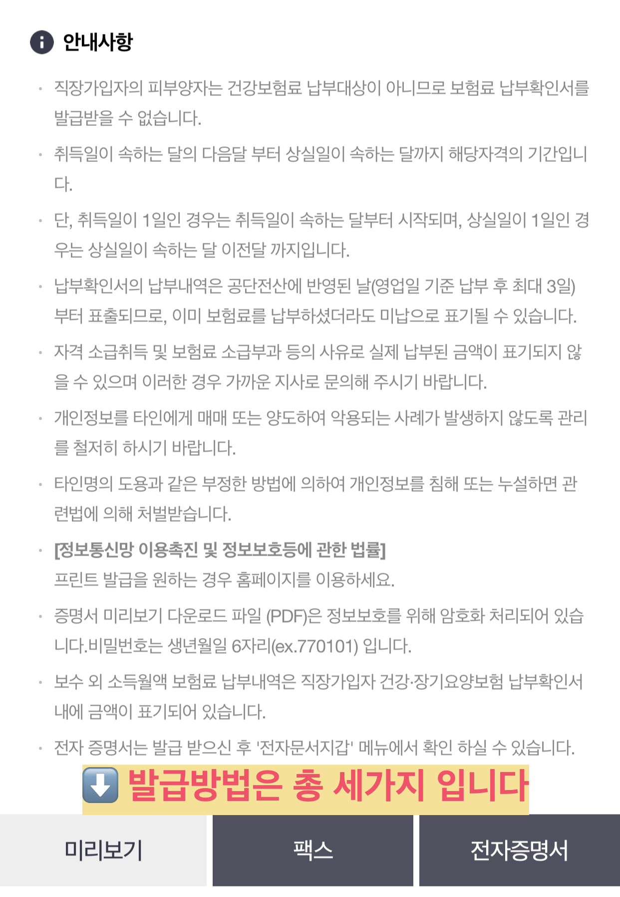 시간 낭비 하지말고 지금 바로 건강보험료 납부확인서를 발급하세요!