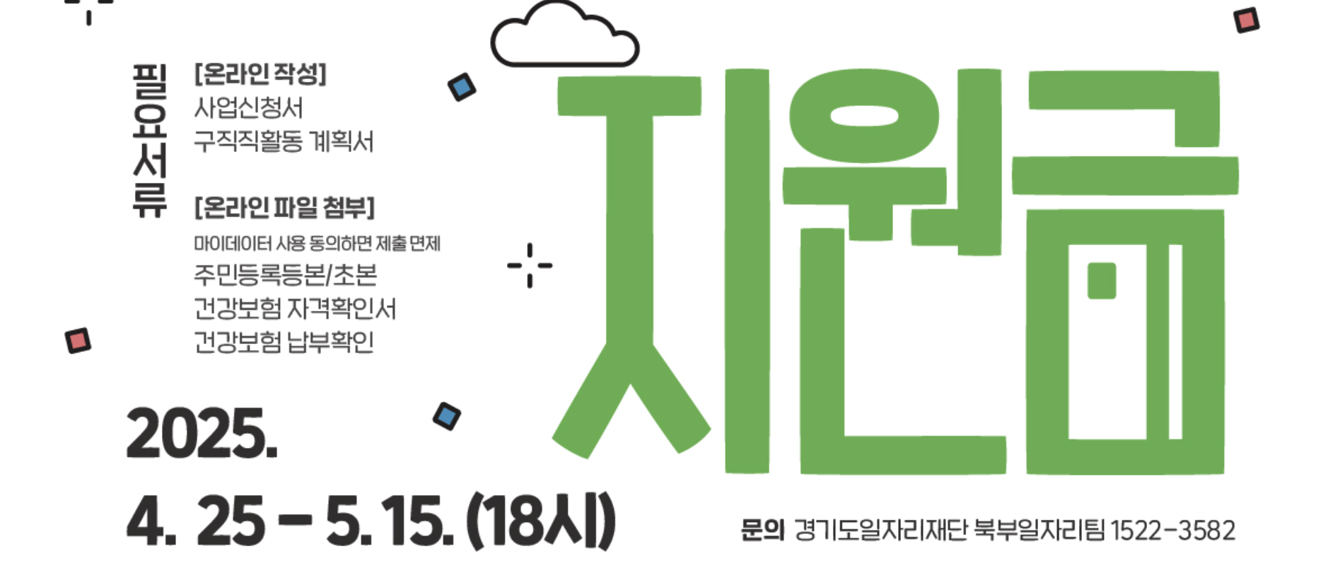 - 경기도일자리재단 콜센터: 1522-3582 (평일 09:00~18:00, 점심시간 제외)