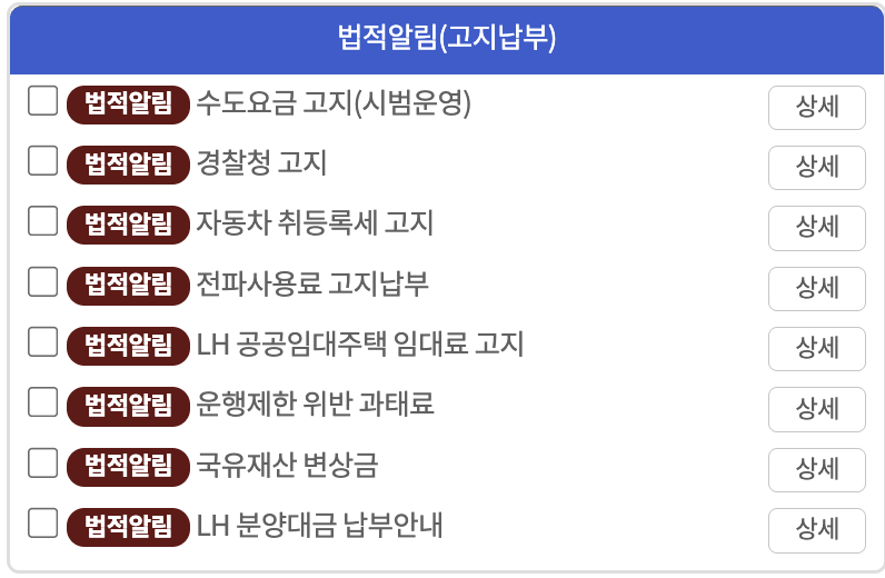 - 체납 내역 및 독촉 안내