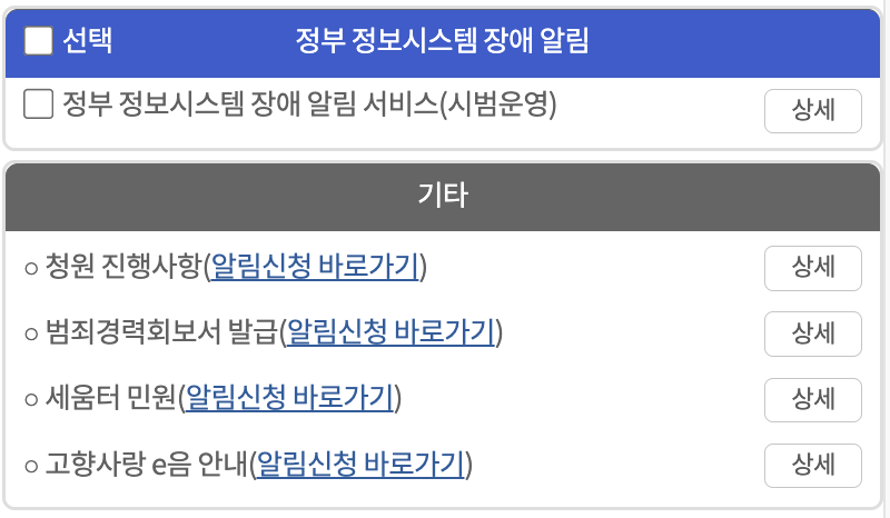 분야별 알림서비스를 지속적으로 확대하고 있습니다.