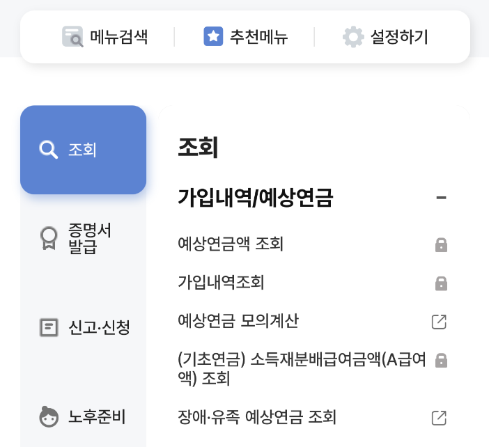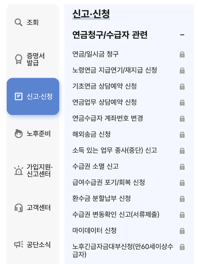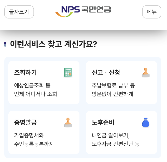 - 연금 개시연령 변경, 납부기간 연장 등의 시뮬레이션 가능