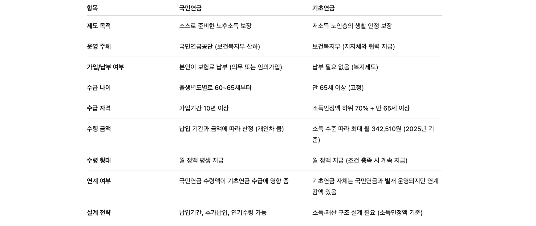 - 국민연금이 적은 경우 → 기초연금 전액 수급 가능