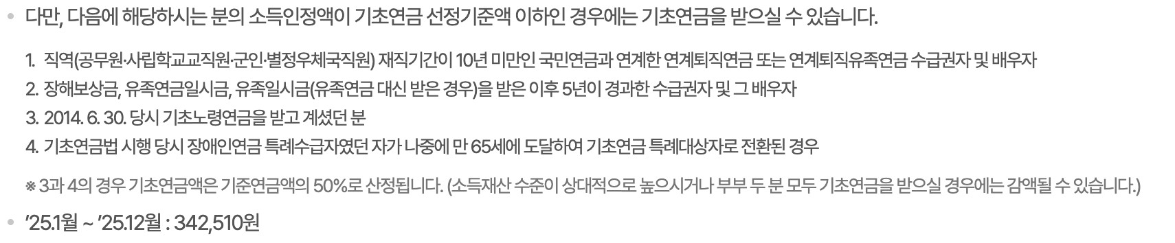 - 국민연금이 적은 경우 → 기초연금 전액 수급 가능
