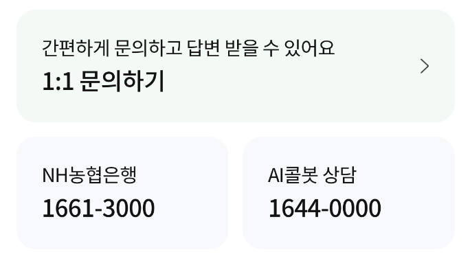 ➡︎ 전화번호 외울 필요 없이, 농협올원뱅크 앱에서 번호를 바로 눌러서 전화 가능합니다. - 경로: 카드 → 분실/일시정지 또는 보안 → 이상거래 차단