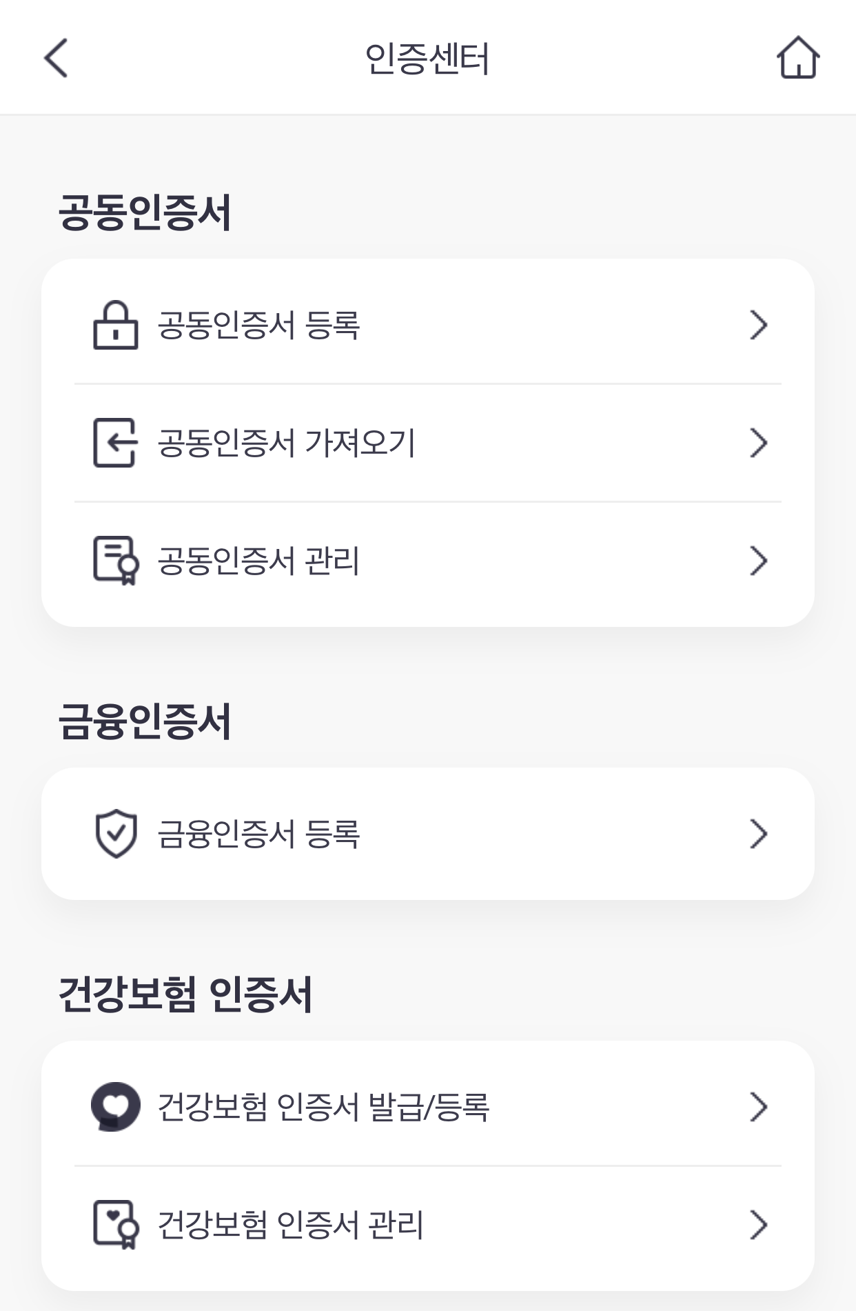 - 금융인증서: 은행앱에서 발급 가능, 6자리 핀번호 입력