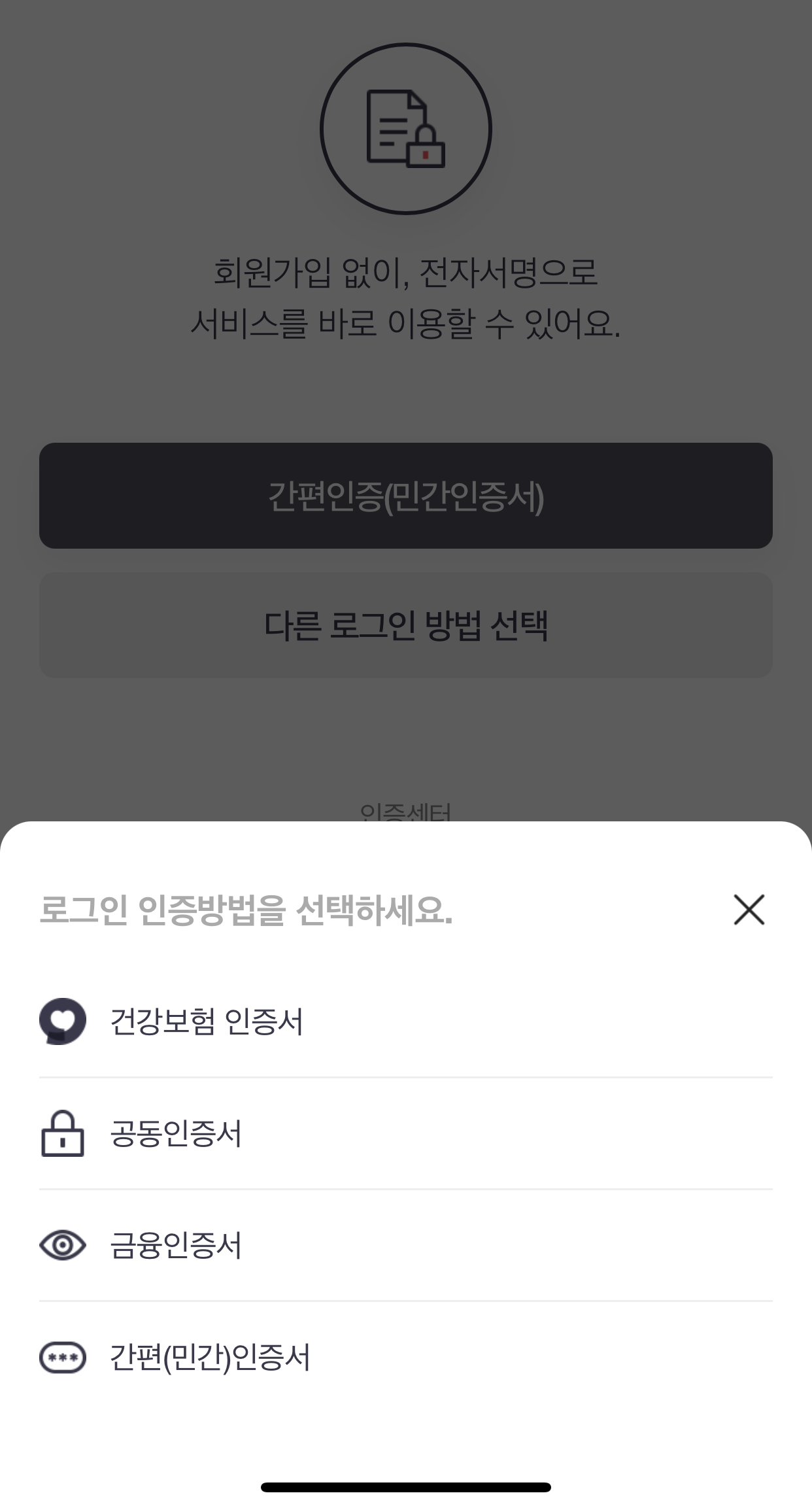 - 간편인증 (카카오, KB, 삼성패스 등): 요즘 가장 인기 있는 방법