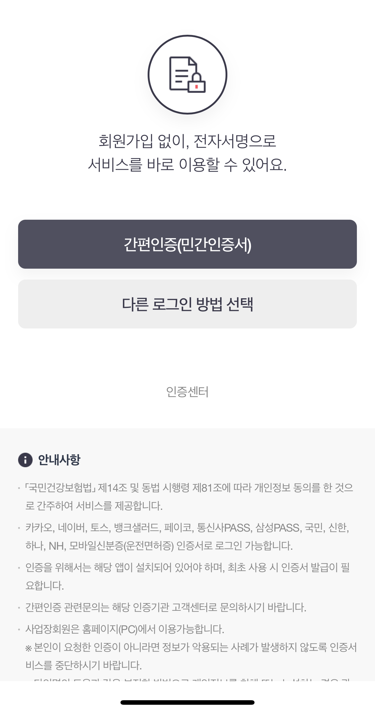 - 네이버 카카오인증 또는 토스, 삼성패스: 사용이 쉽고 인증도 빠른 편이라 부모님이나 어르신들에게도 적합합니다. 특히 부모님께 설치해드히는 경우에도 한 번 설치 후 생체인식 기반으로 사용 설정해두면 인증은 익숙하고 안전합니다.