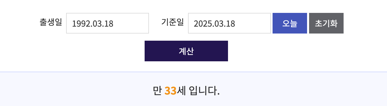 - 계산 방식: 현재 연도에서 출생 연도를 빼고 생일이 지나지 않았다면 1살을 추가로 뺍니다.