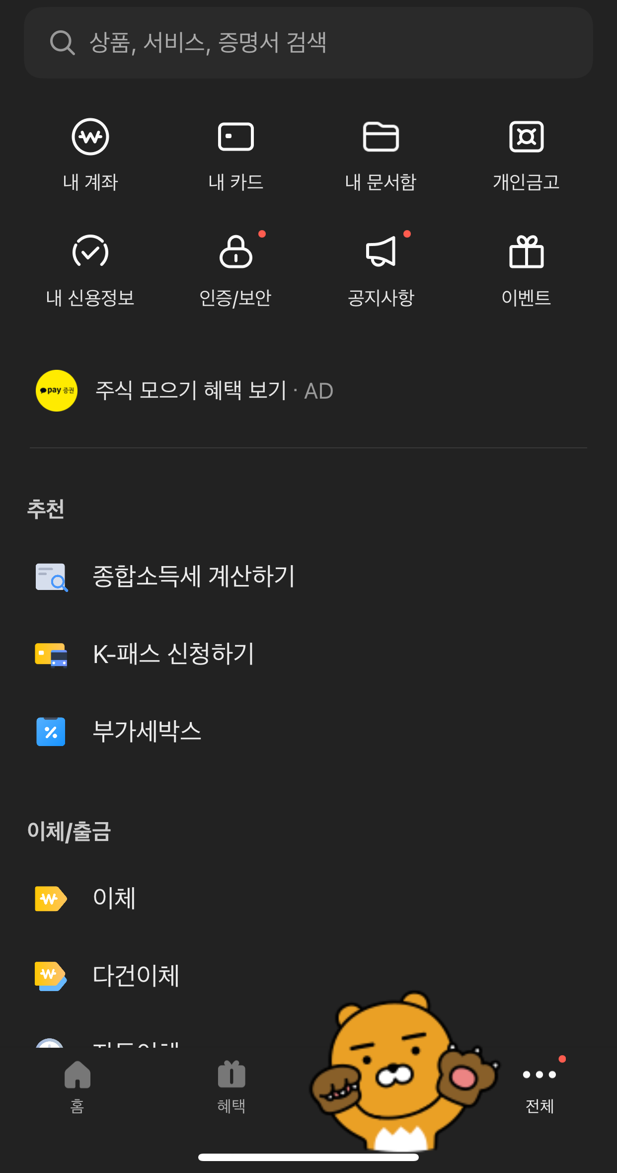 - 카카오뱅크 앱 설치 및 로그인: 카카오뱅크앱을 사용하고 있다면 바로 검색창을 활용하세요.