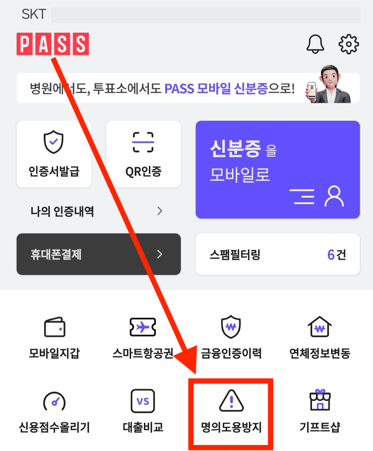 - 스미싱 차단: SKT PASS 앱의 스팸 필터링 기능을 활용해 의심스러운 문자를 차단하세요.