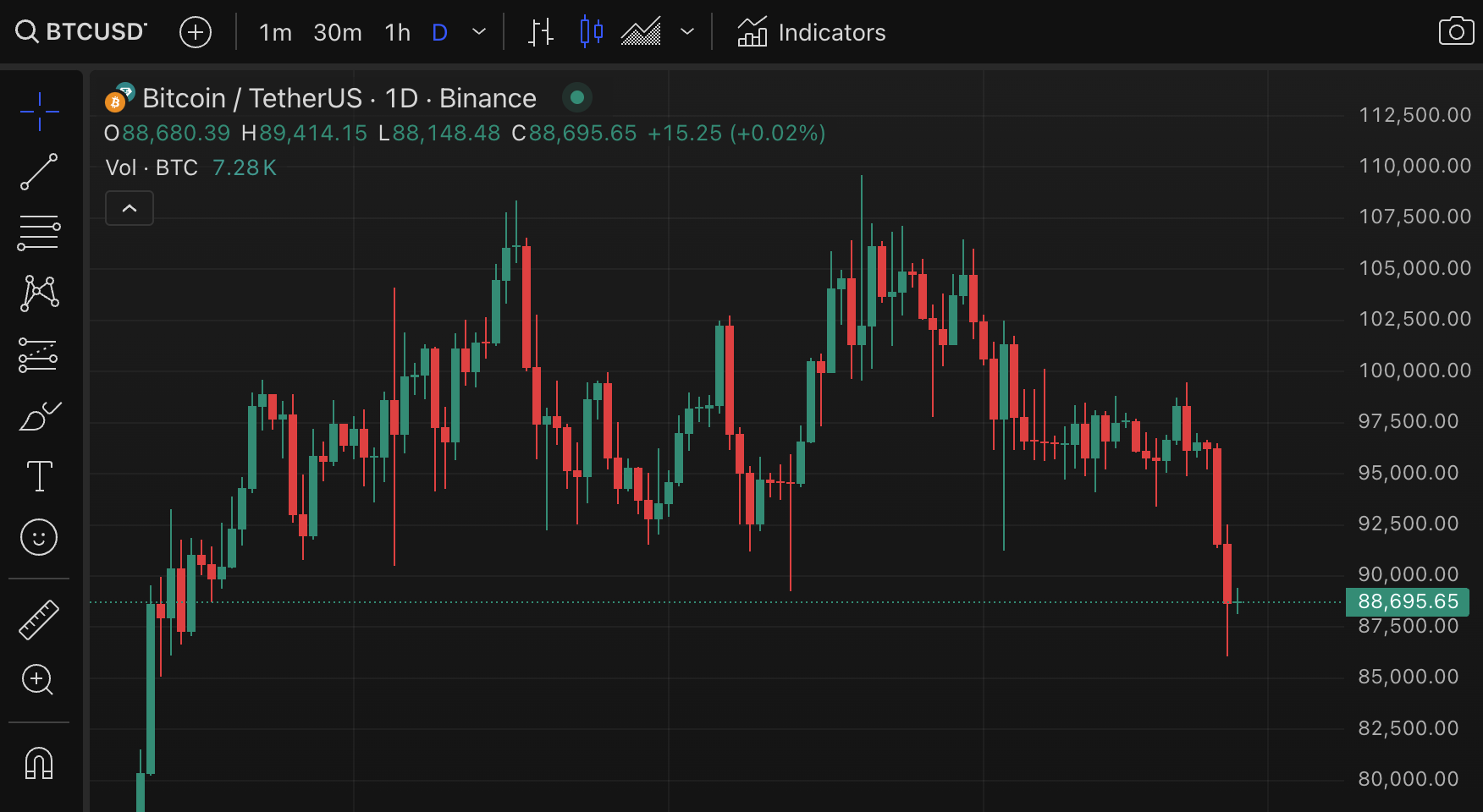 최근 미국 주요 거래소 코인베이스 기준으로 비트코인 시세는 약 $88,000~$89,000 수준을 오가고 있습니다. 이는 2024년 말 사상 최고점인 $108,000~$110,000에서 조정을 겪은 뒤 지지부진한 횡보화 낮은 하락을 포함하고 있는 찾은 모습입니다. 지난 1주일간 약 5~6% 하락하며 단기 변동성을 보여줬지만 여전히 2024년 초 대비해서는 두 배 이상 오른 강한 상승세를 유지하고 있습니다.