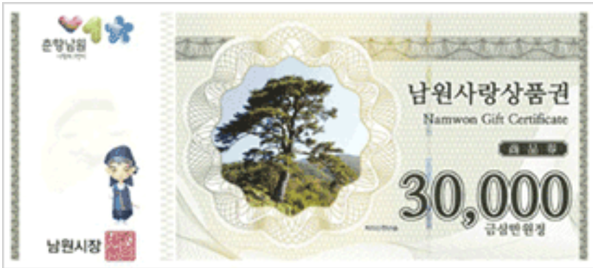 지역 밀착형 소비 방식으로 각자 소재지 앱 설치 후 QR코드/바코드 결제하는 방식으로 일부 지역은 지류 발급 가능성 있음.