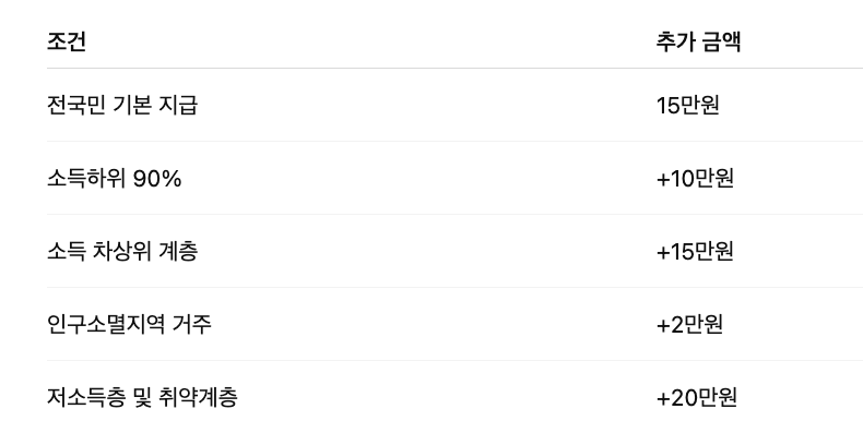- 전국민에게 지급되지만, 소득 기준에 따라 차등 적용
