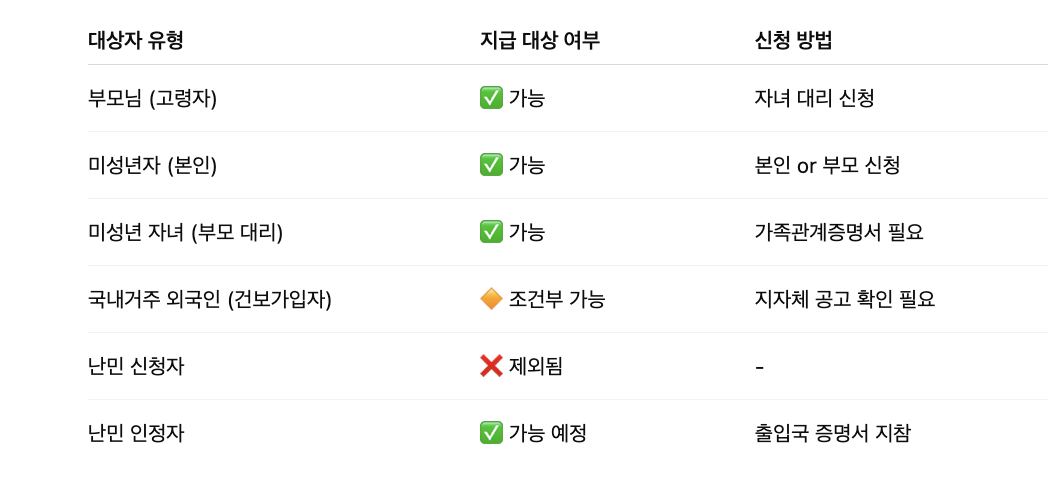 👉 본인과 가족이 각각 지급 대상인지 확인하세요.