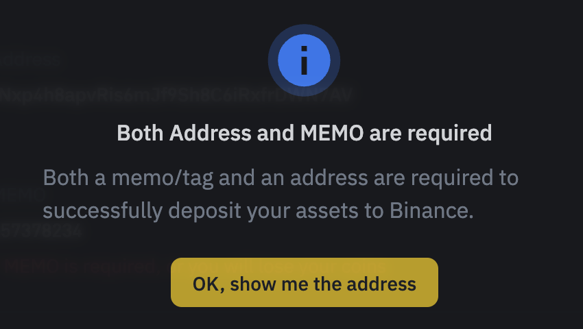 - 바이낸스 입금 주소 확인: