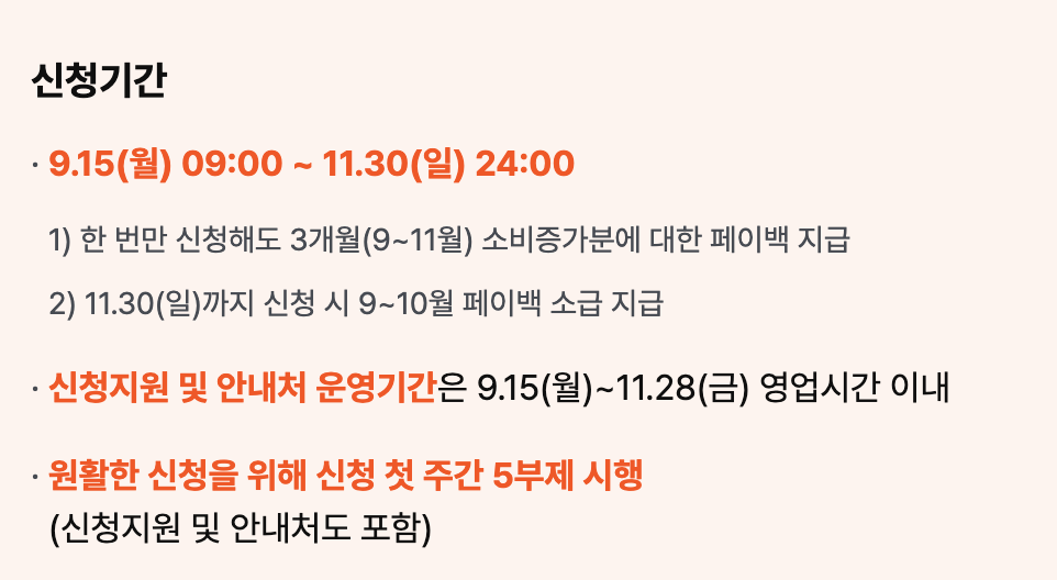 11월 30일까지 신청하면 9~10월 페이백은 소급 적용되니 참고하세요.