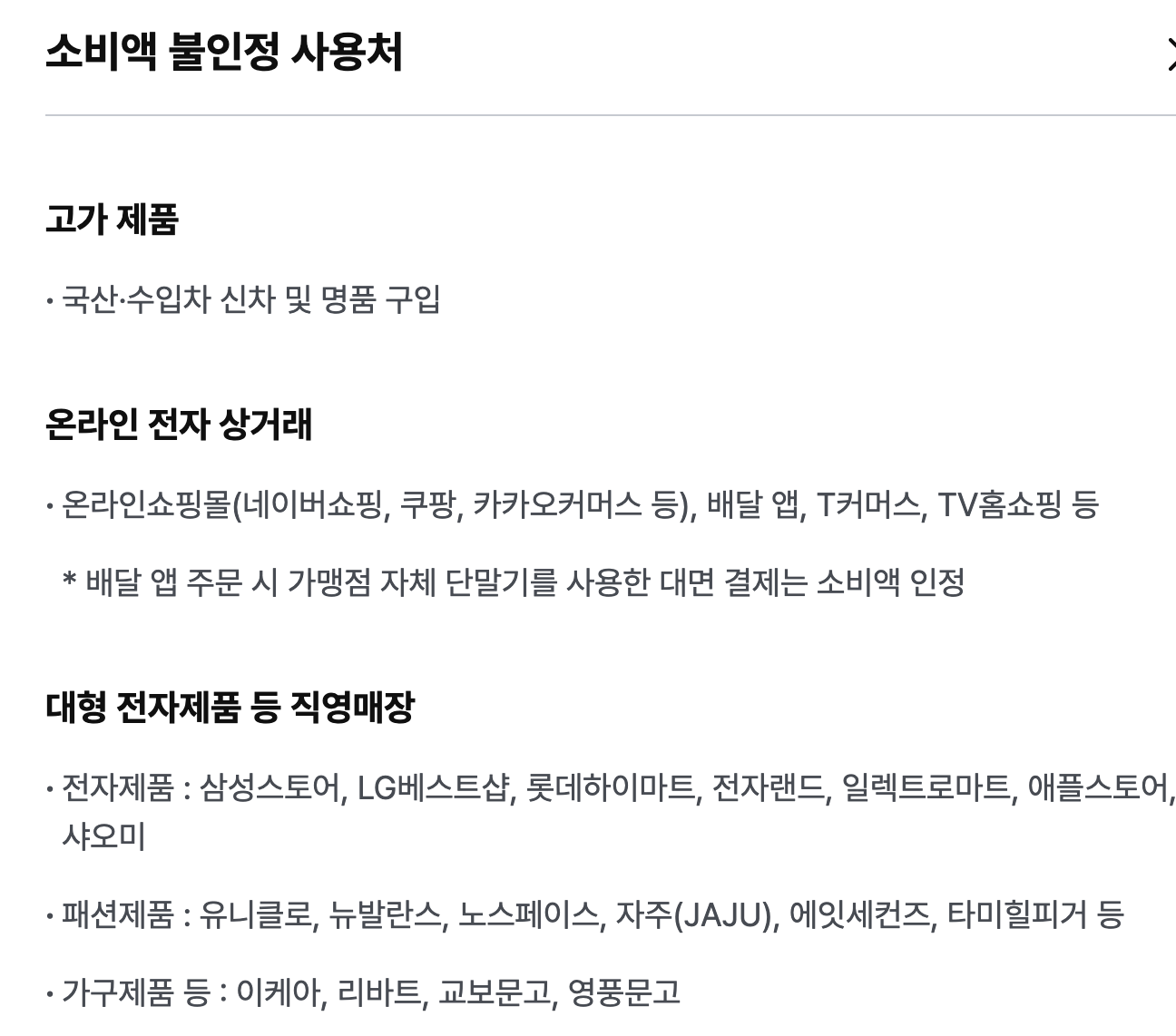 소비액 불인정 사용처를 보면 알수 있습니다. [본문 하단 참조]