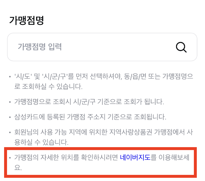 삼성카드에서는 소비쿠폰 사용처 조회를 위해 네이버지도 활용을 권장하고 있습니다.