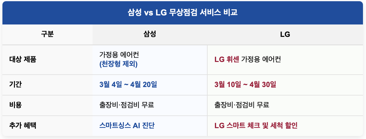 삼성 vs 엘지 에어컨 무상점검 서비스 비교