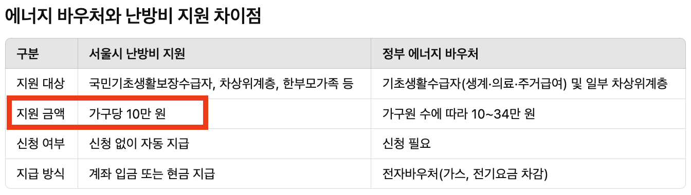 서울시 난방비 지원 2025 달라진 점 에너지 바우처 중복 지원 확인