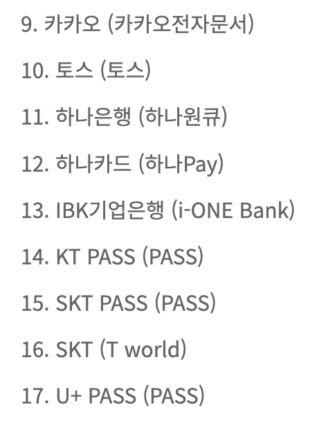 • 카카오톡, 네이버, 토스, 은행 및 통신사 PASS 앱 등으로 신청 가능