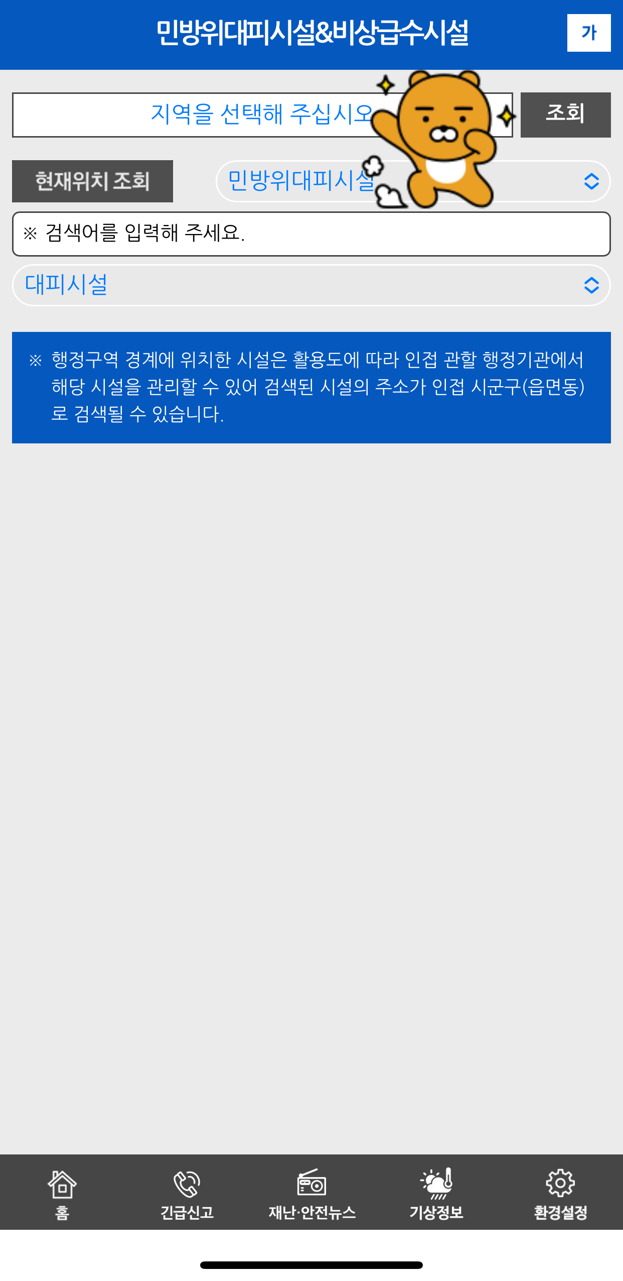 3. 대피소 찾기: 내 위치 기반 민방위시설, 한파쉼터, 임시주거시설까지 지도와 길찾기 제공