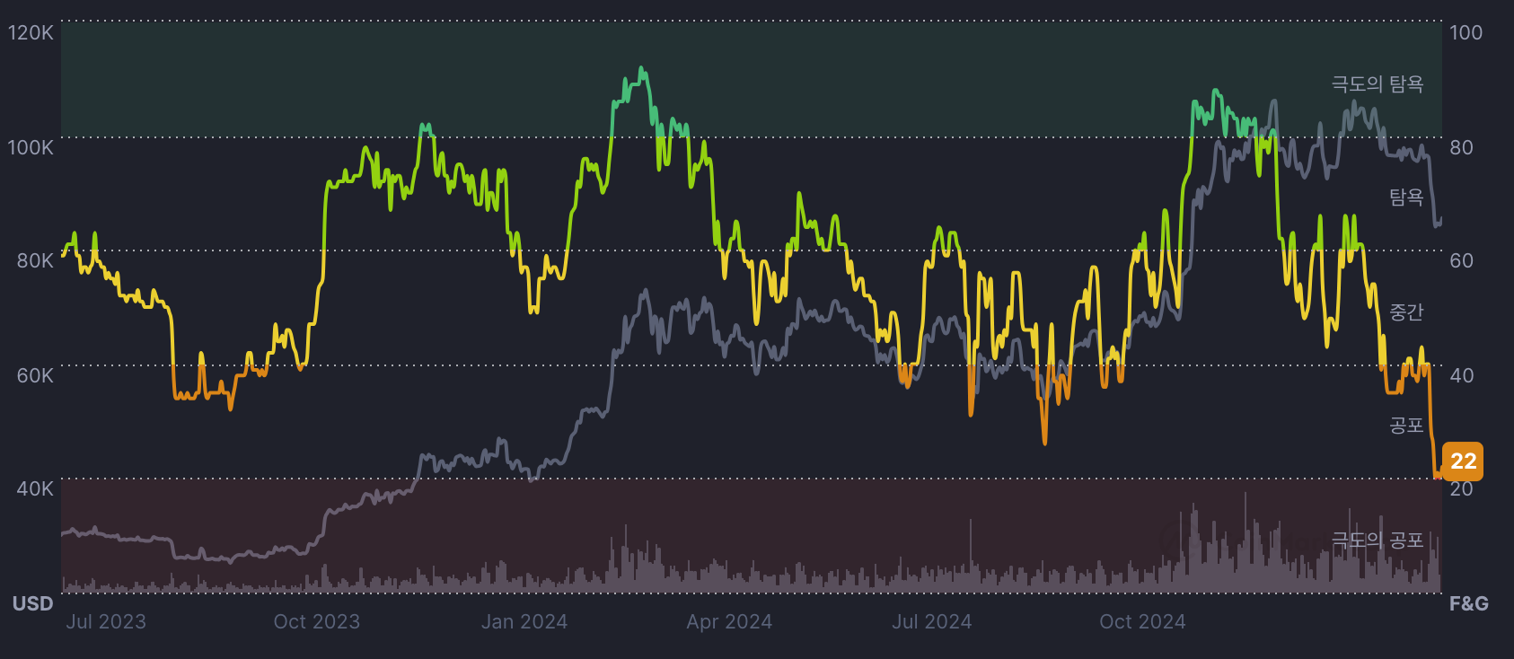 하락의 주요 원인은 미국 트럼프 행정부의 관세 정책 강화와 글로벌 경제 불확실성을 꼽아봅니다. 많은 언론에서도 상호관세 발표 이후 시장이 동반 하락했다고 보도하기도 했는데요, 엎친데 덮친 격으로 여기에 2월 21일 Bybit 거래소의 14억 4천만 달러 규모 ETH 자산 해킹 사건까지 겹치면서 시장의 불안감이 커졌습니다.