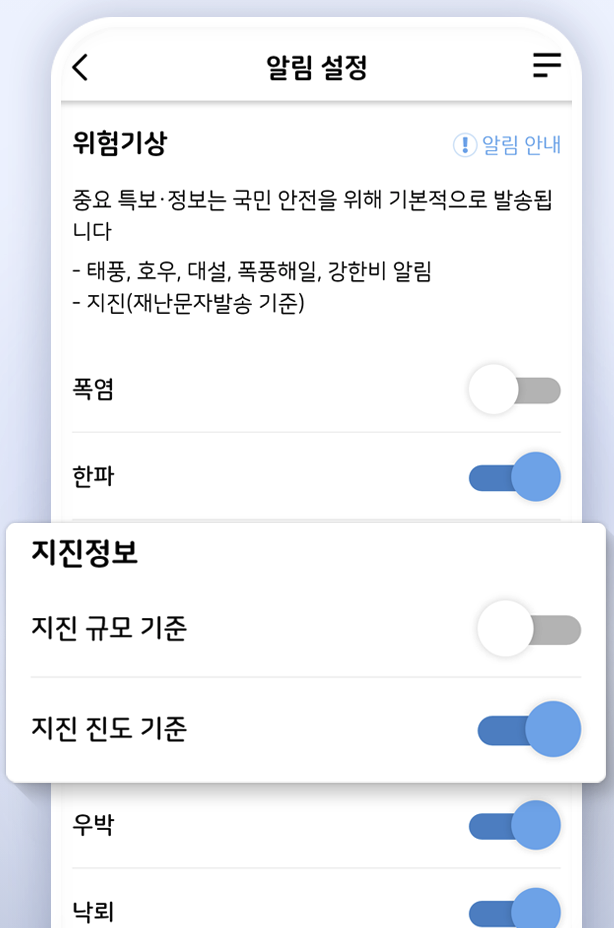 - 알림 설정 적극 활용하기: 비가 오기 30분 전 알림, 기상특보 알림 등은 외출 전 중요한 결정 포인트