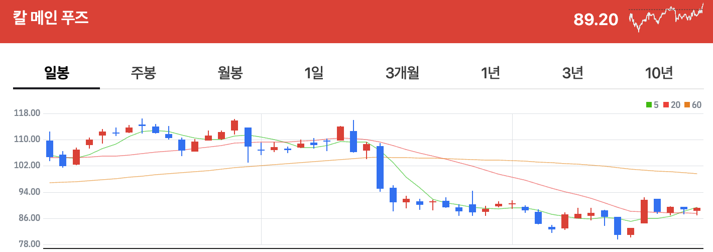 1. 칼 메인 푸즈 Cal-Maine Foods (CALM, NASDAQ)