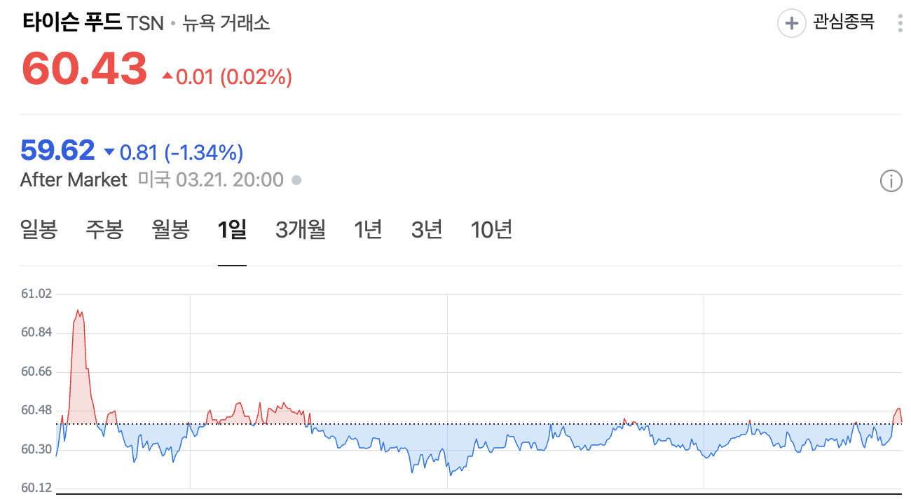 - 동향: 2025년 1분기 닭고기 매출 10% 증가, 주가 60달러대, 비용 5% 상승.