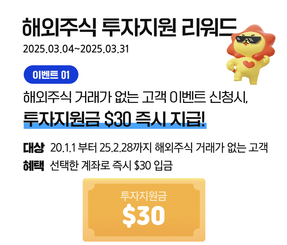 - 추천 대상: 장기 투자자를 위한 최저 수수료로 미국 주식이나 비트코인 ETF 등 장기 보유를 계획하는 투자자에게 추천합니다. 삼성증권 앱 설치로 시작하면 바로 매수금액으로 사용 가능한 $30를 받을 수 있습니다.