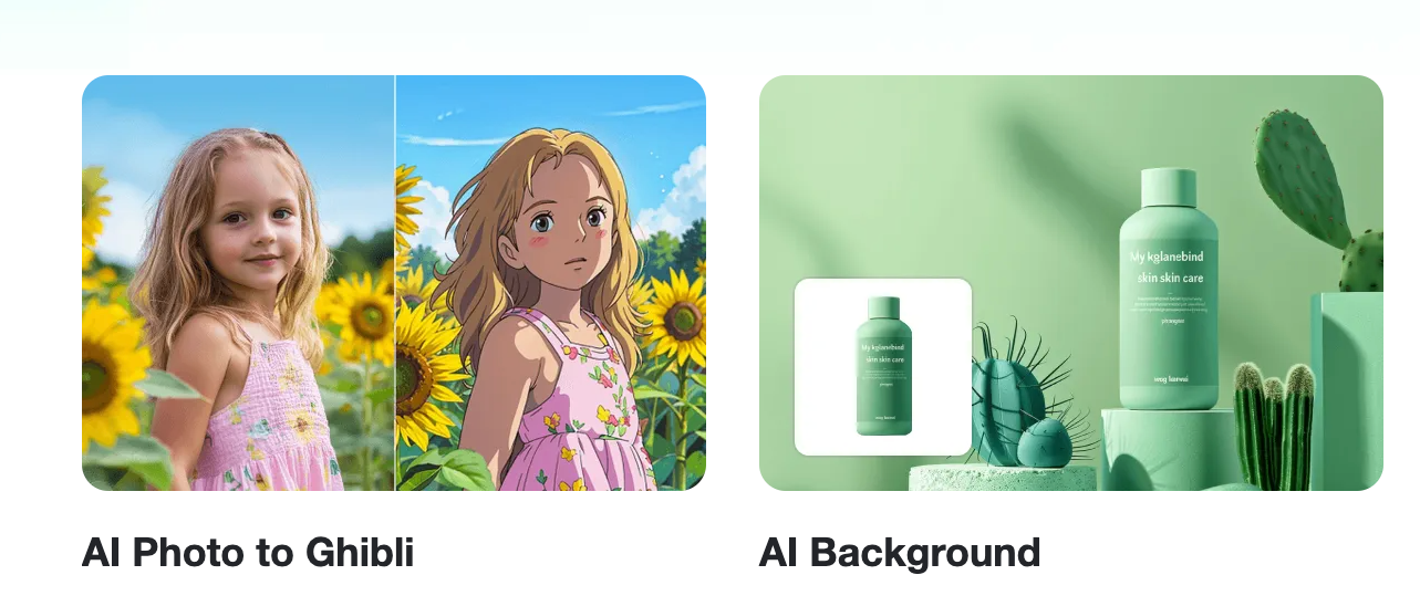 ChatGPT를 유료 결제하기는 부담스럽고 무료 버전의 생성 횟수의 제한으로 불편함을 느낀다면 Fotor와 insMind와 같은 무료 툴도 사용할 수 있스니다. 아래 바로가기로 쉽게 접근할 수 있고 간단한 단계로 지브리 스타일 변환을 지원합니다.