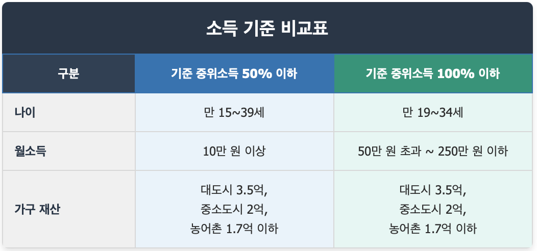 - 예시1: 30세, 편의점 주 4일 아르바이트 (월소득 약 90만 원) → 신청 가능