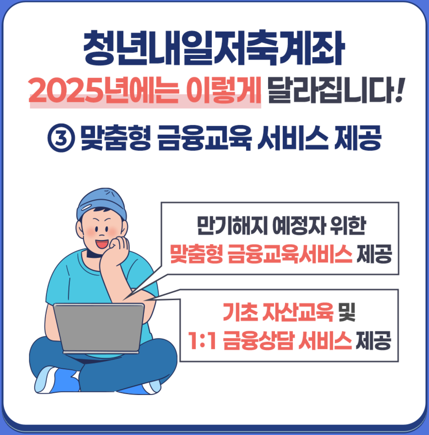 우리는 학교를 다니는 동안 자산이나 재테크, 경제, 돈모으기 등 살면서 필요한 경제지식은 배우지 않습니다. 그렇다보니 성인이 된 이후 돈관리를 어려워 하는 경우가 많은데요. 청년내일저축계좌와 같은 지원제도를 통해서 목돈마련과 함께 금융상식을 쌓는 과정은 매우 중요합니다.