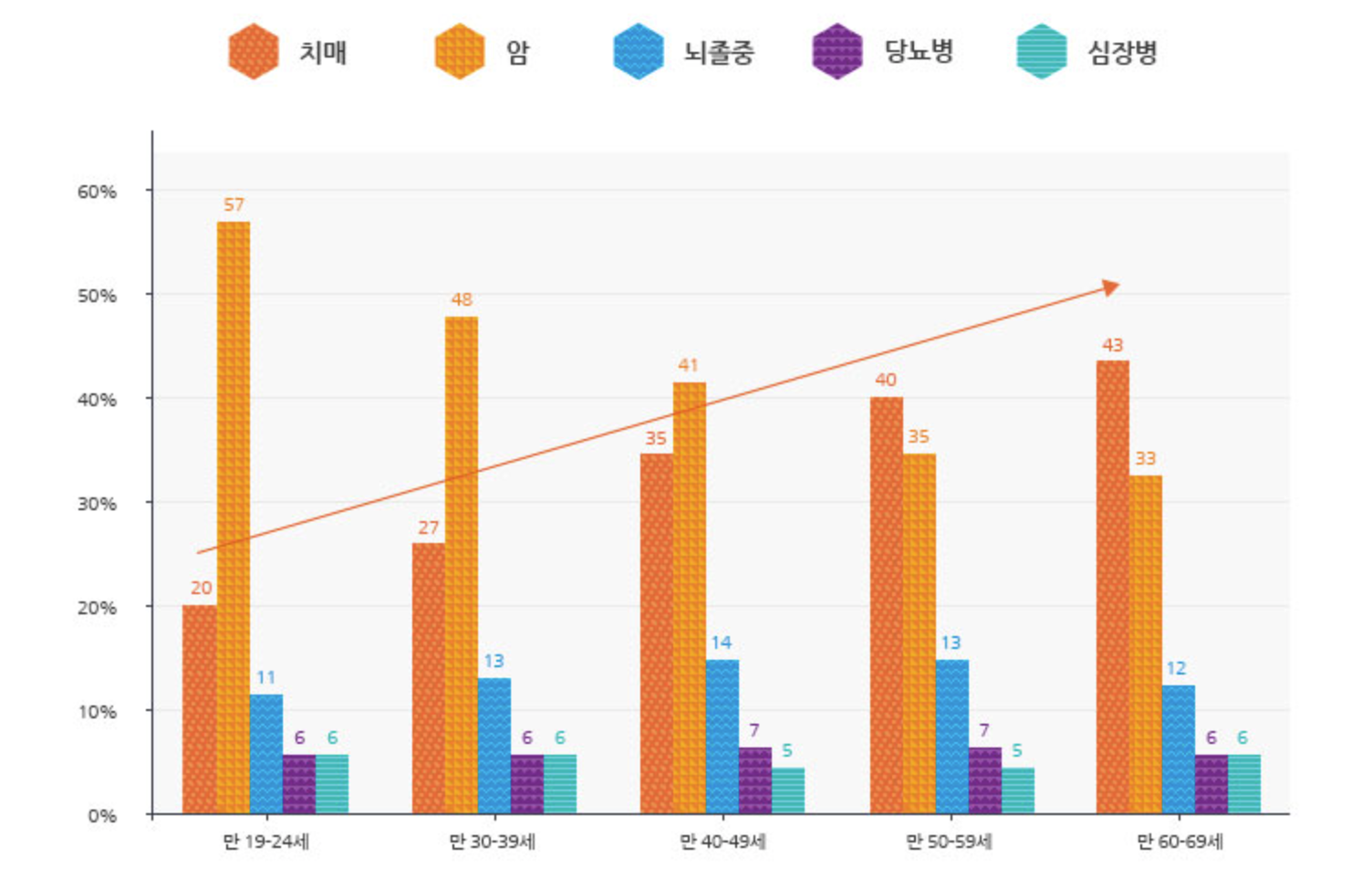 점차 치매 발병 연령대가 낮아지는 경향도 있어 기억력이나 언어구사력 감퇴와 치매의 구분 사이에서 혼란스러운 경우도 있습니다. 혹시나 염려는 되는데 아직 치매간병보험이 없다면 아래 추천 내용 톺아보기를 활용하세요. 치매는 조기 발견이 중요한 질병으로 걱정만 하면서 미루다 보면 오히려 화를 부를 수 있습니다. 고민하지 말고 지금 시작하세요.