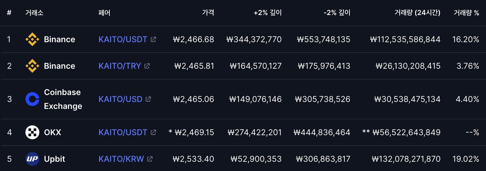 카이토는 런칭 이후 여러 주요 거래소에 지속적으로 상장되며 탄탄한 유동성을 확보했습니다. 2025년 3월 기준 카이토가 상장된 주요 거래소를 바로 확인하세요.