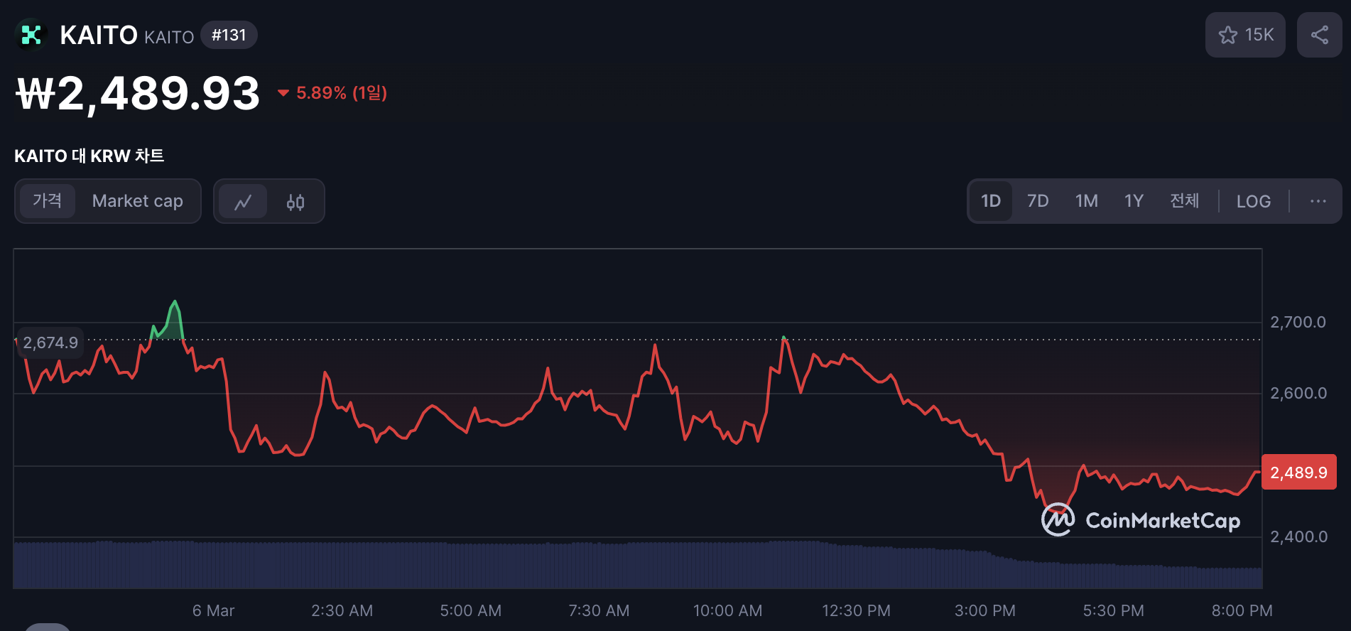 2025년 3월 카이토 코인의 가격은 약 1.79달러(한화 약 2,500원) 수준으로 최근 24시간 동안 약 7.3% 하락했습니다. 이는 시장 전반의 조정과 트럼프 정부의 암호화폐 비축 계획 발표 후 급등했던 부분이 소화되는 과정으로 보입니다. 단기적으로 볼 때, 카이토 시세는 몇 가지 요인에 의해 좌우될 가능성이 높습니다.