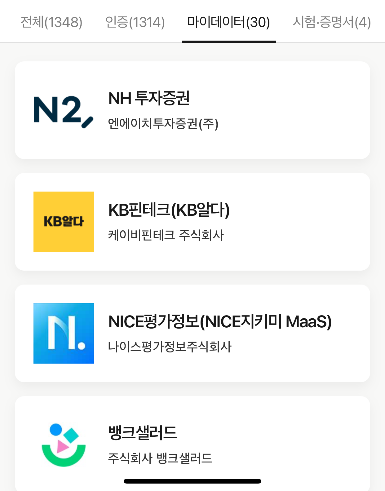 - 금융기관: 주요 시중은행, 보험사, 카드사, 증권사 등