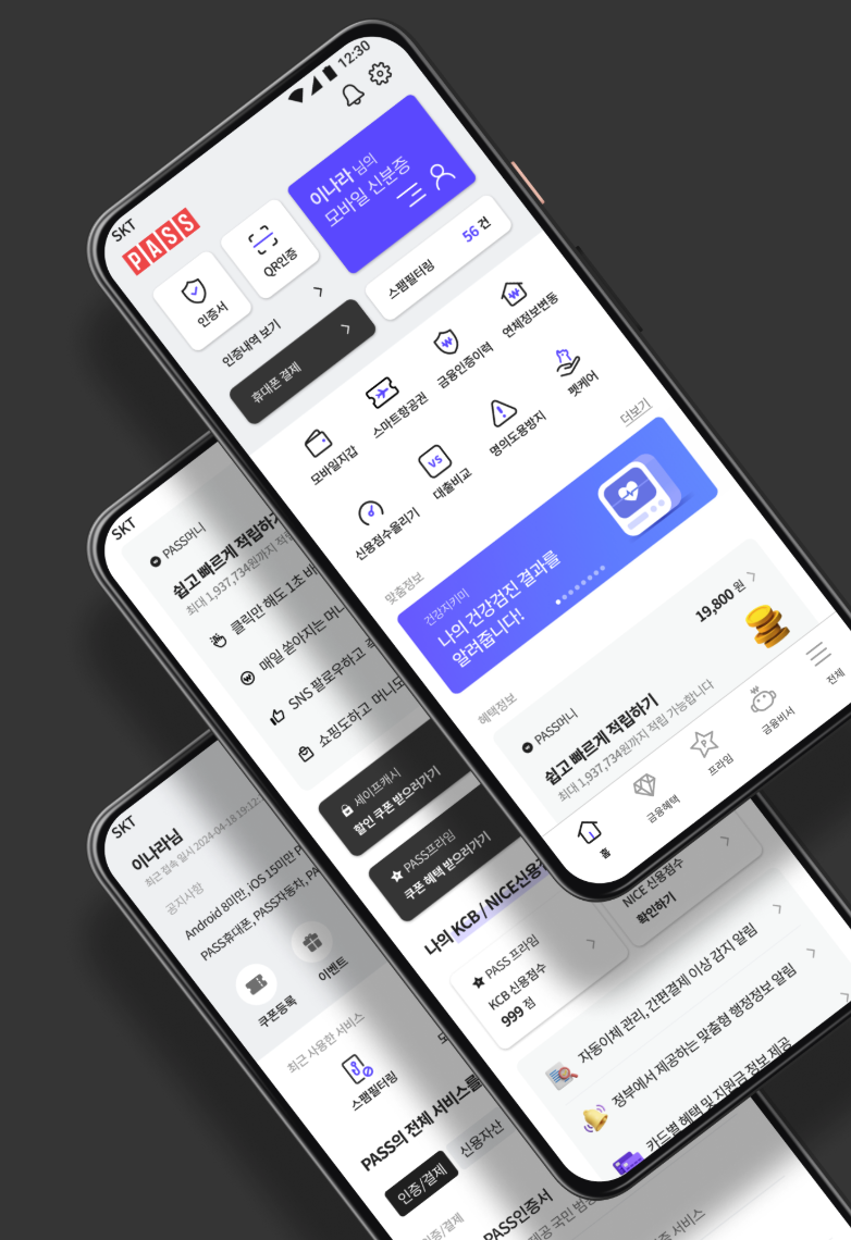 국내 주요 통신3사 SKT, KT, LG유플러스는 각각의 패스앱을 운영하고 있습니다. 큰 기능은 비슷하지만 약간의 차이가 있습니다. 주의할 점은 내가 사용하는 통신사의 패스앱만 설치하고 사용이 가능하다는 것 입니다. skt 사용자가 kt pass앱을 설치해서 쓸 수는 없습니다.