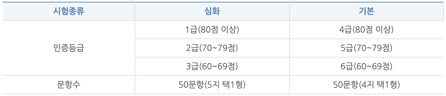 시험 종류와 인증 등급