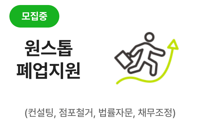 - 점포철거비, 원상복구비, 법률자문, 채무조정 등 최대 400만원 상당 비용 지원